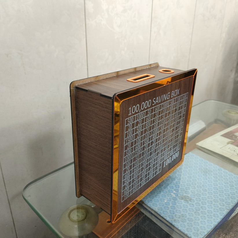 is a beautifully crafted and durable saving box designed to help you reach your financial goal of 100,000. Made from high-quality wood, this savings box adds a rustic charm to your space while encouraging consistent saving habits. Whether you're planning for a special purchase, emergency fund, or a future event, this box is the perfect motivational tool. Its solid construction ensures your savings are safe, and the fixed goal helps keep you focused and disciplined.